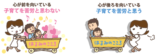 っていう答えだったでしょう。子育てを苦労と思うかそう思わないかは心が前を向いているか後ろを向いているかではないでしょうか。