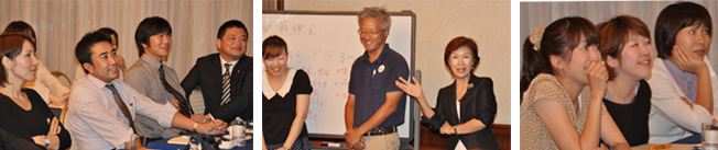 職種、年代も異なる男女が和気あいあいとした雰囲気で、食事を共にし語り合いながら「母性型原理」を学び合っています。
