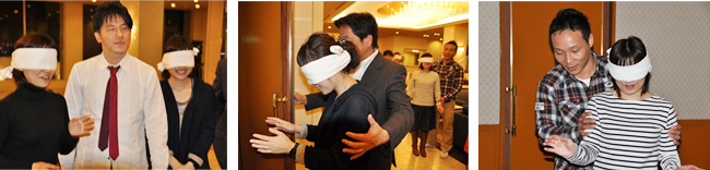 目隠しをして、パートナーに誘導してもらう、という演習です。